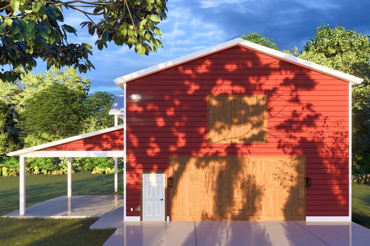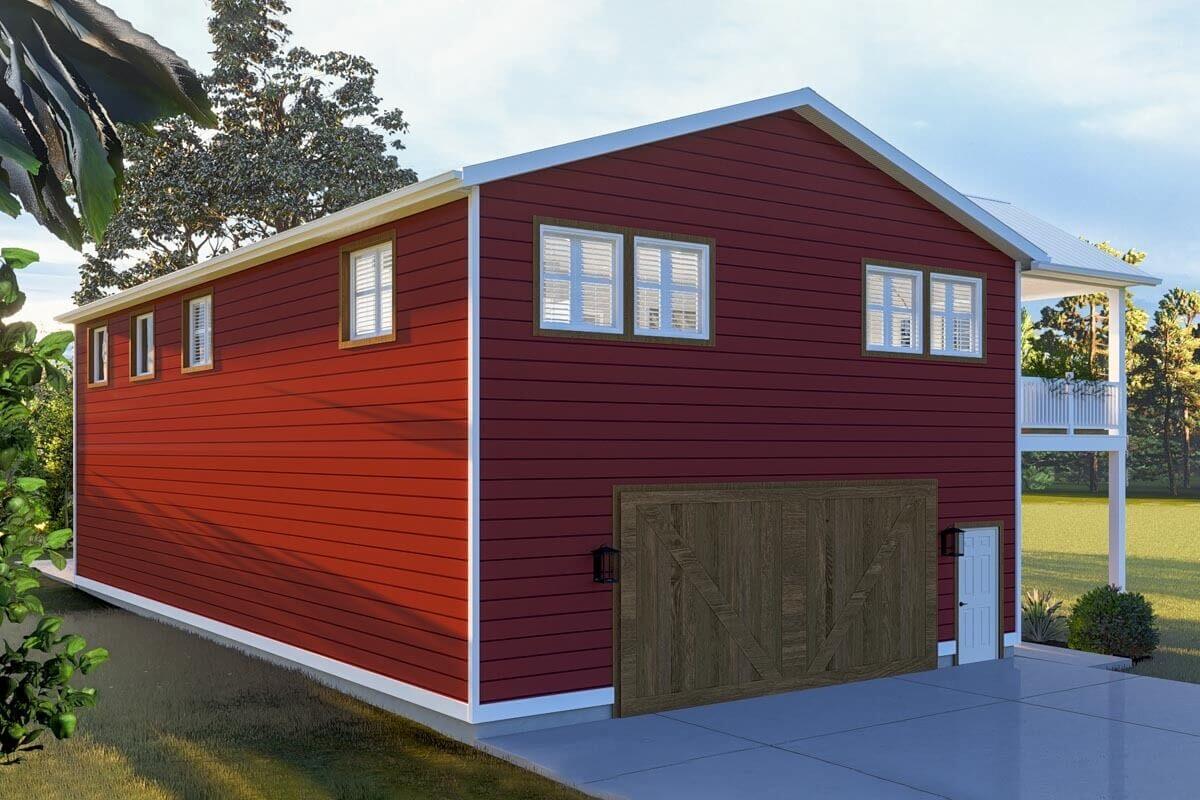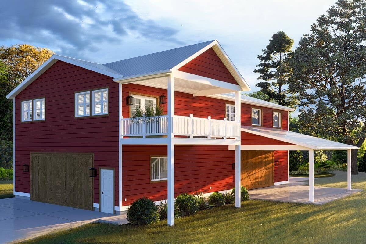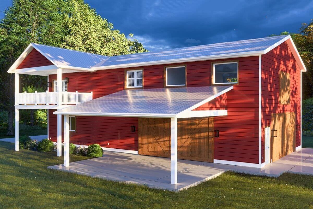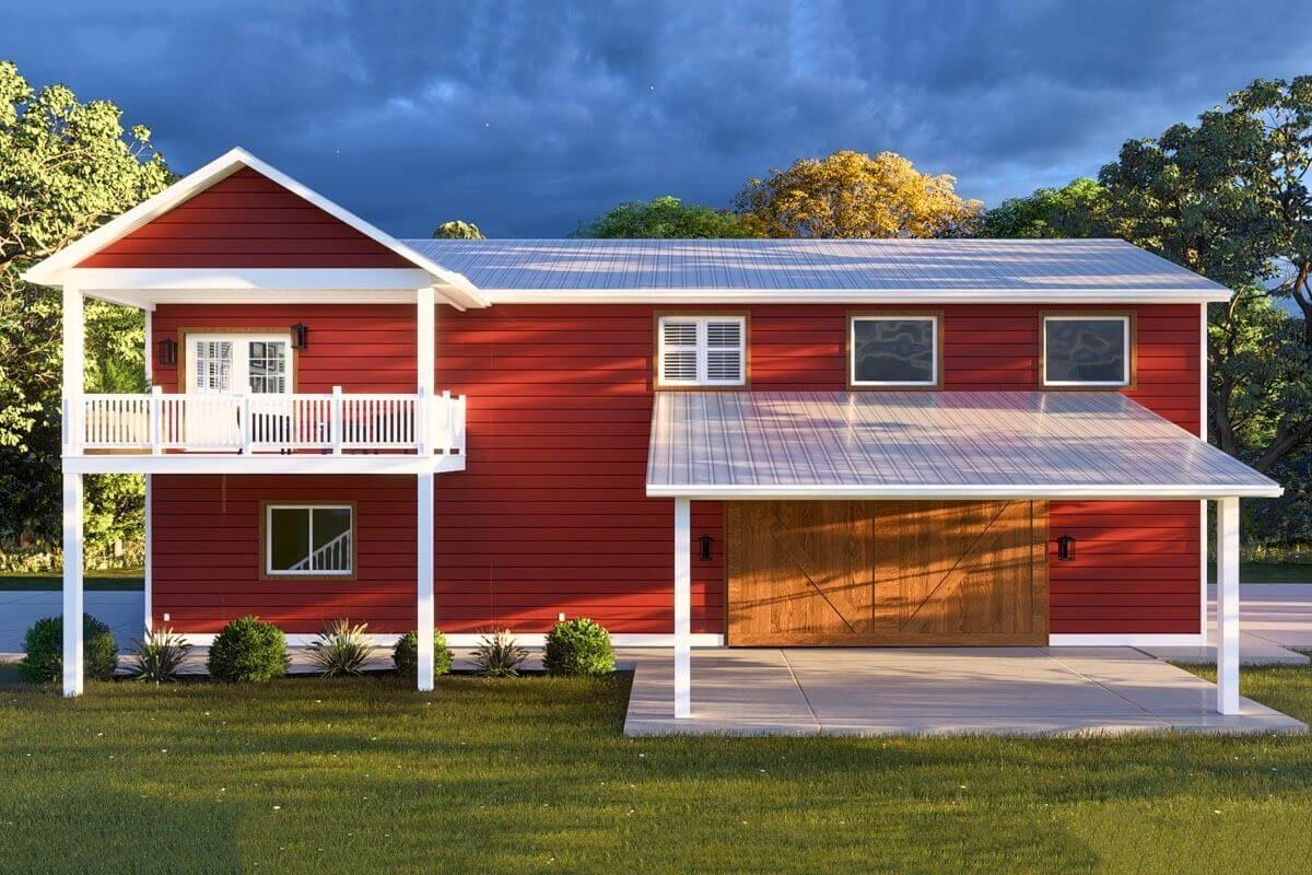 1,253 Sq. Ft. 2-Bed Barndominium-Style House with 1,920 Sq. Ft. of Parking (Floor Plans)