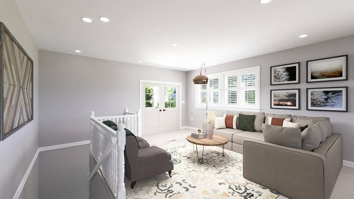 To enhance practicality, there’s a full bath within the garage area, allowing you to clean up after tinkering with your motor toys. Additionally, the laundry area is thoughtfully situated on this level for easy access.