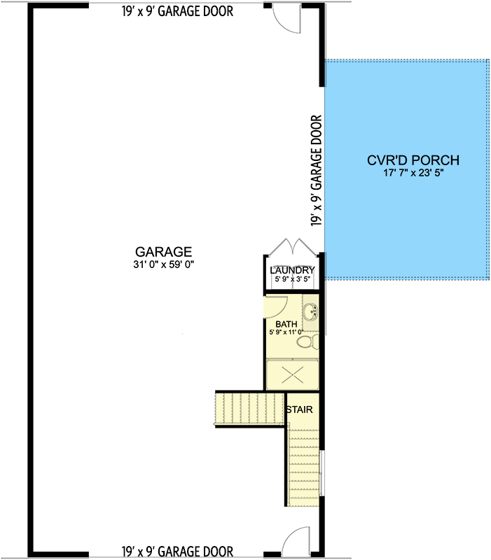 A garage bay and entry door are found at the front of the house.