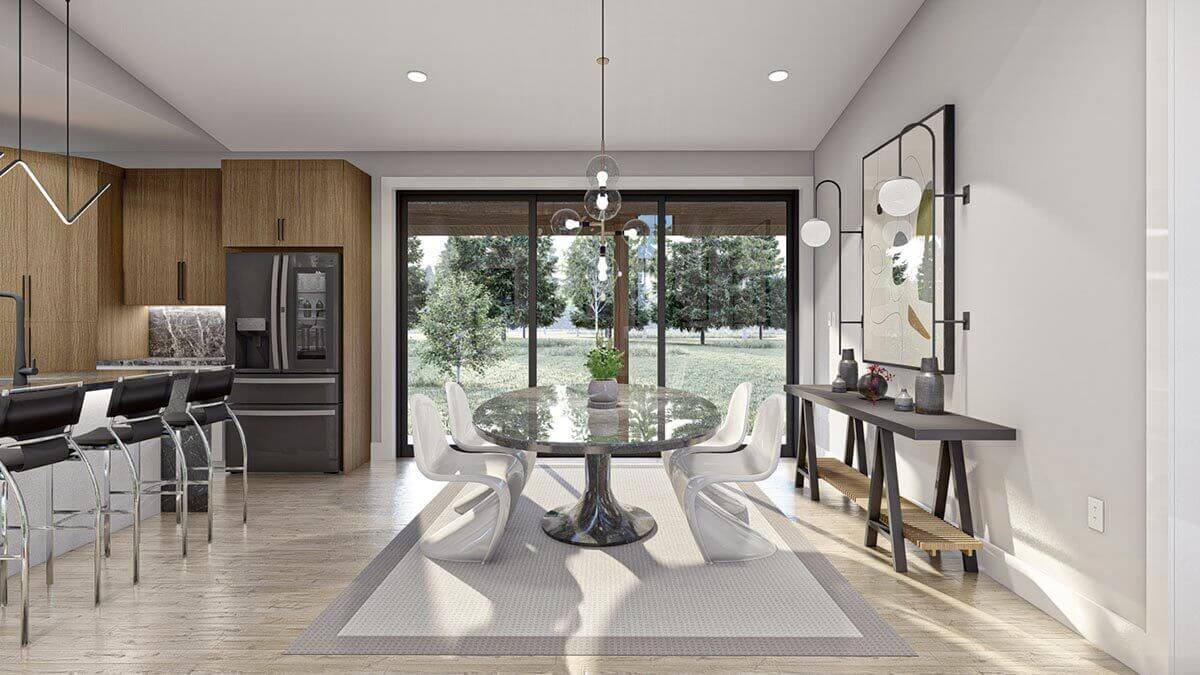 Welcome to the gallery of photos for a three-bedroom 1,700 Square Foot Modern Barndominium-Style House. The floor plans are shown below: