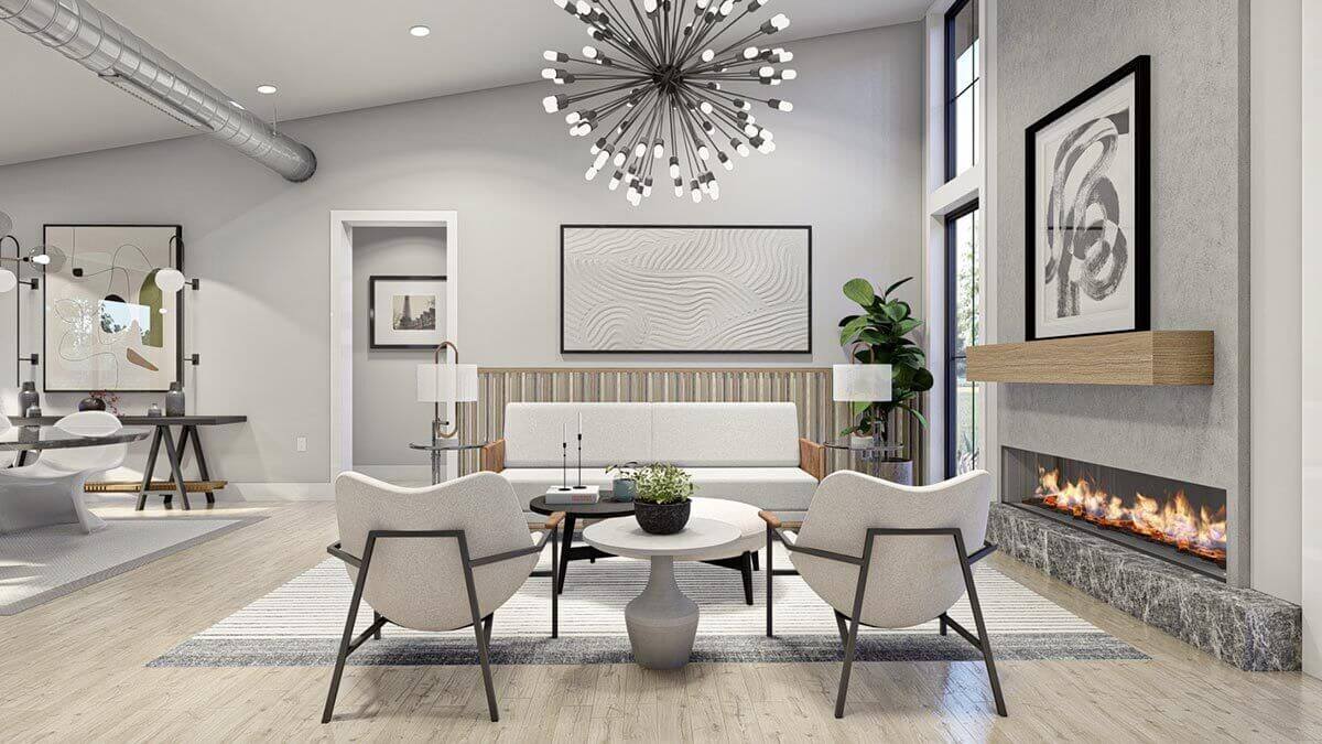 The main area encompasses a grand living room with a built-in fireplace, a well-defined dining space, and a kitchen that boasts a generously sized walk-in pantry and a central island.