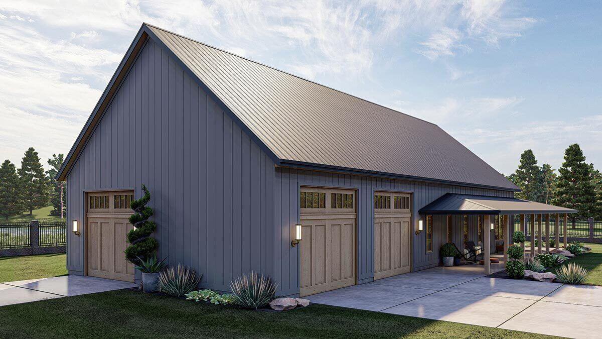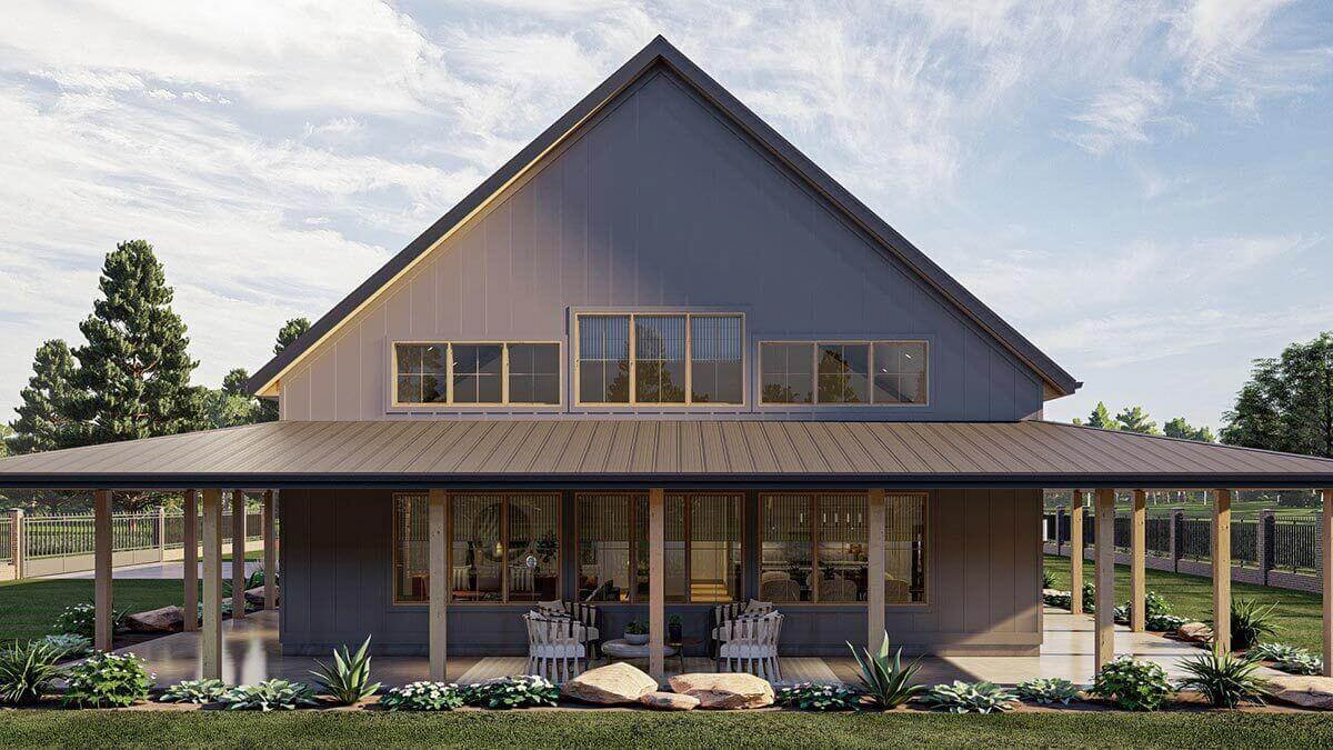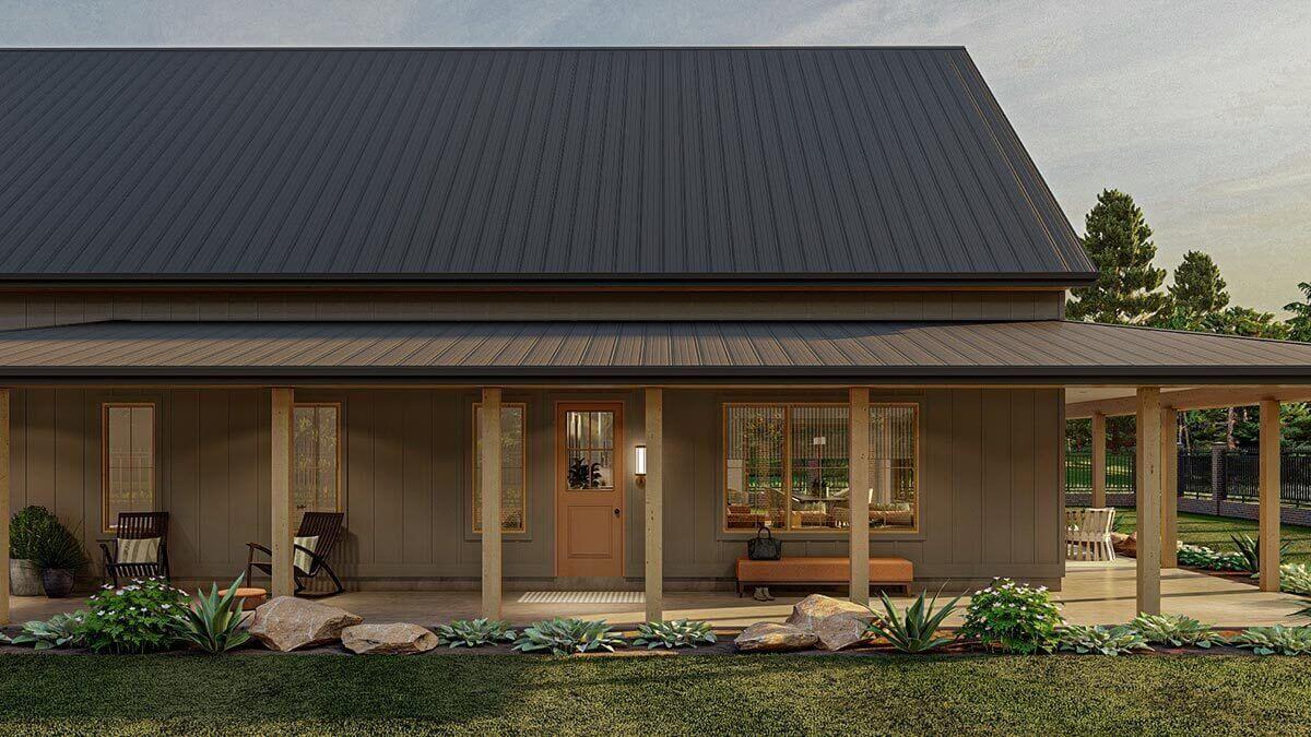 3-Bedroom Barndominium Style House with Massive Wrap Around Porch (Floor Plans)