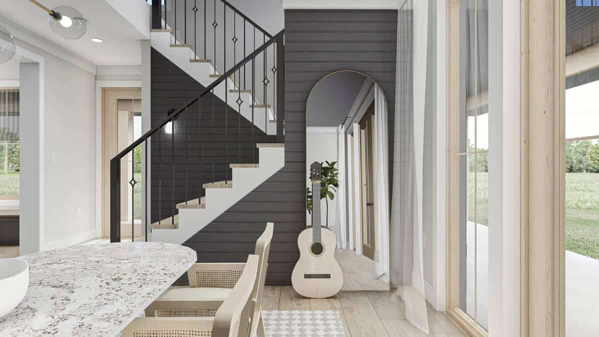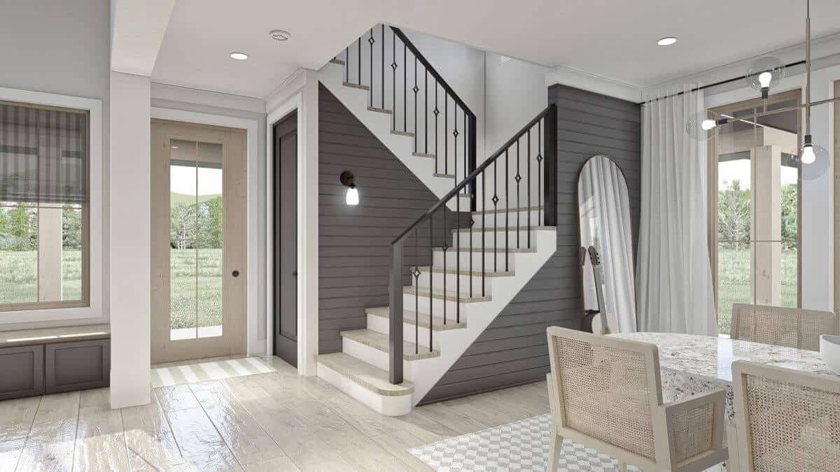 The foyer leads to the dining room, which boasts oversized windows.