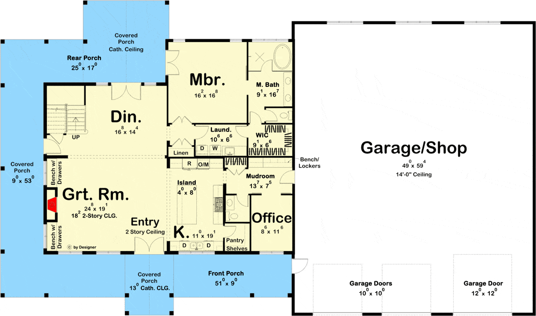 Welcome to the gallery of photos of a Barndominium-Style House with a Home Office and an Oversized RV Garage. The floor plans are shown below: