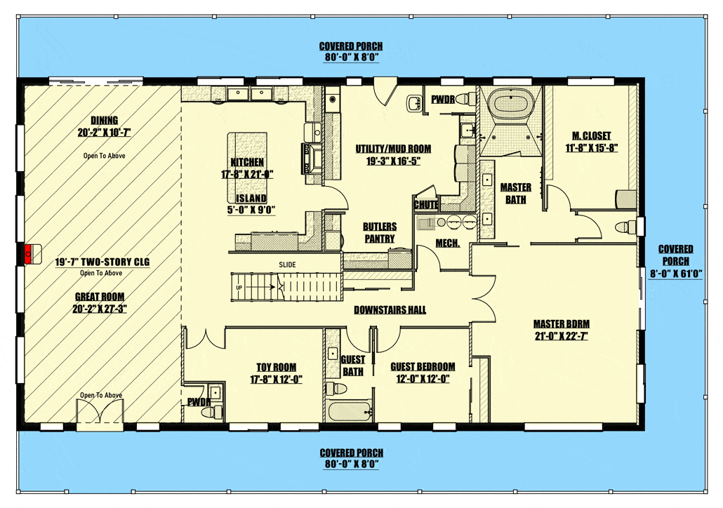 Enhancing outdoor living, the home boasts an 8′-deep covered porch that wraps around three sides.