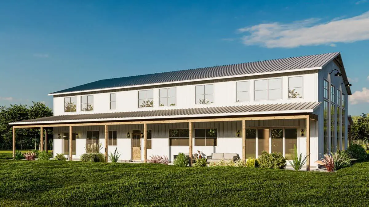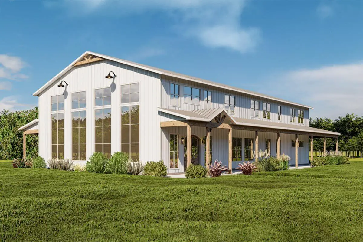 Double-Story, 6-Bedroom Barndominium Home With Wraparound Porch (Floor Plans)