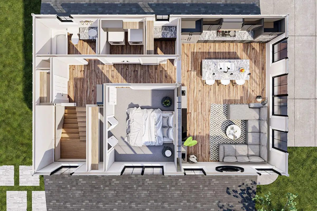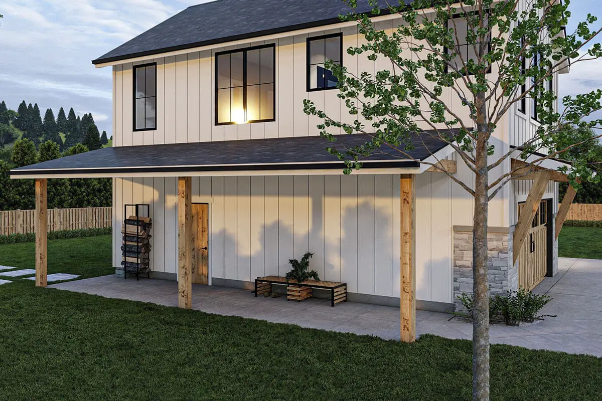 Double-Story American Garage Apartment Home With Barndominium Styling (Floor Plans)