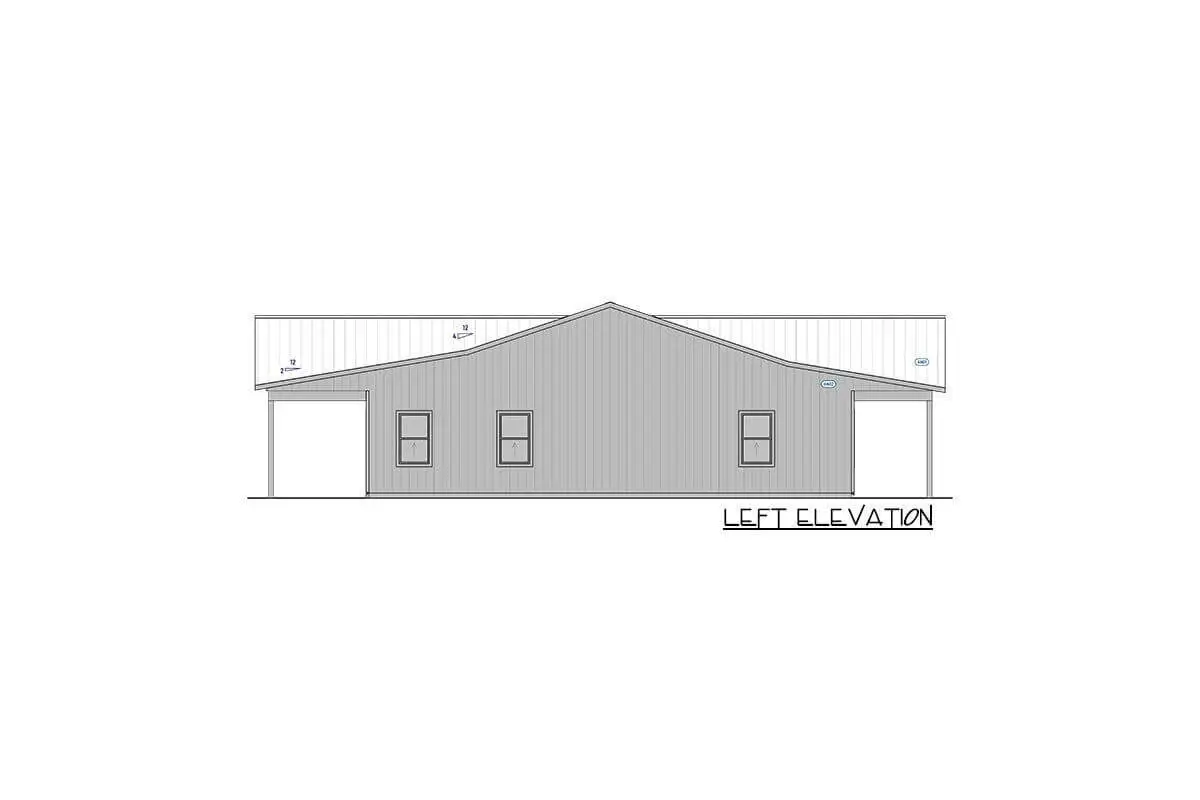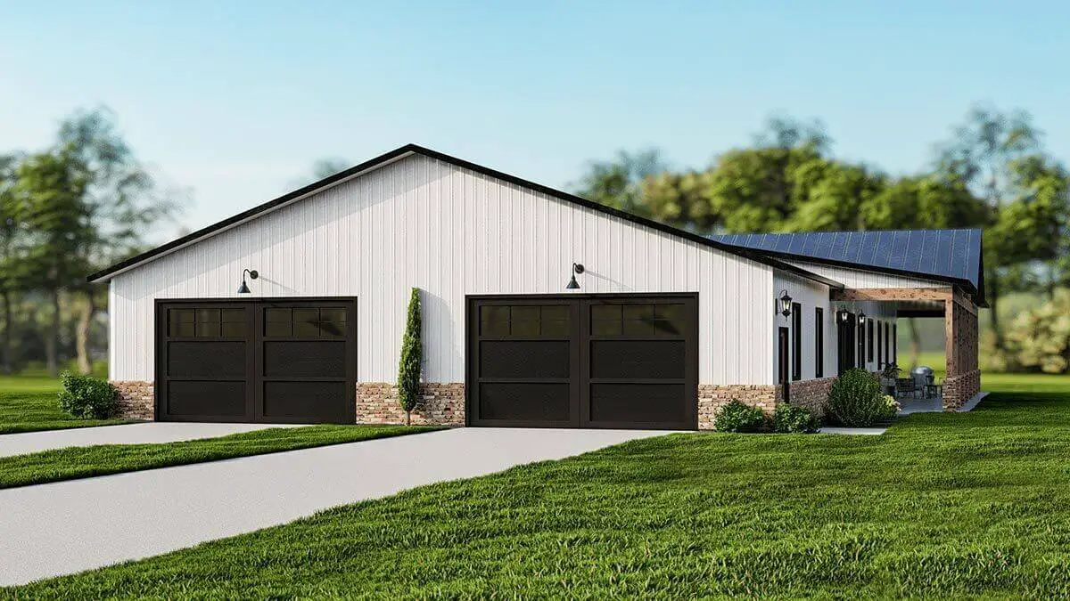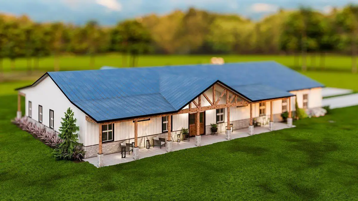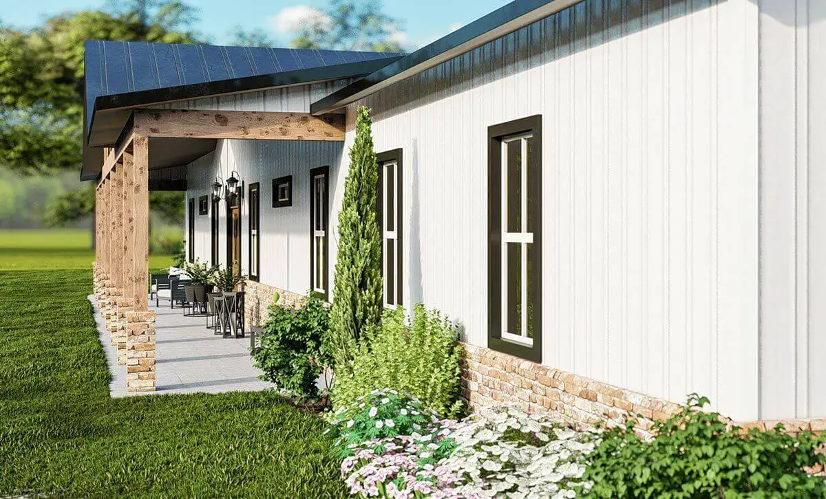 Angle view of the Exclusive One Story Barndominium-style House with 5 Beds